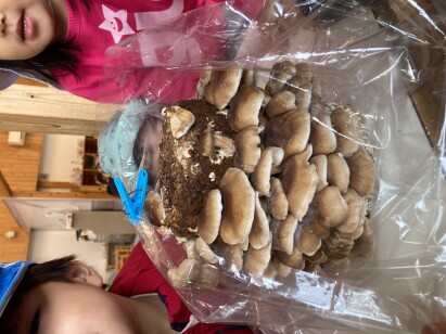 みどり組(2歳児)で大切に育ててきた椎茸が、ついに収穫の時を迎えました!