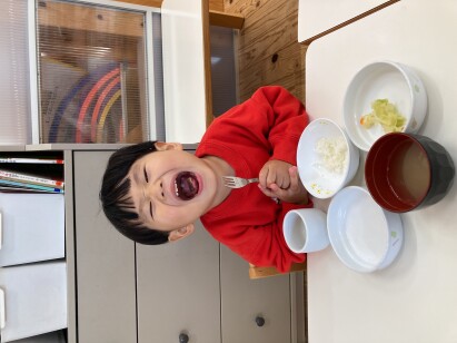 収穫した椎茸は、給食のお味噌汁に入れていただき、子どもたちは、「きのこ!」「しいたけあった!」とパクパク食べ進めていましたよ。