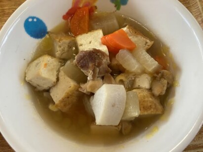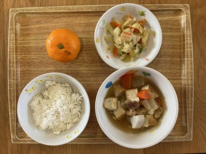 ◎おでん風煮 ◎キャベツの胡麻和え ◎みかん