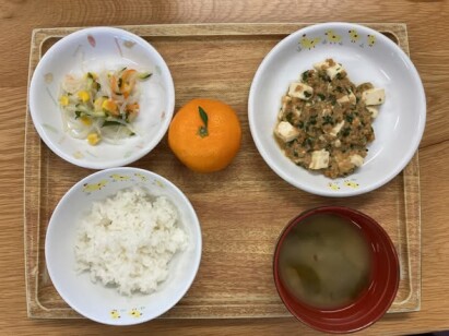 ◎マーボー豆腐 ◎春雨サラダ ◎みかん ◎豆腐とわかめの味噌汁