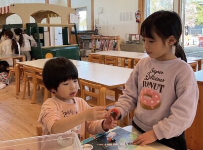 進級に向けて、お兄さん・お姉さんたちのクラスへ遊びに行きました。
