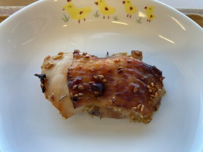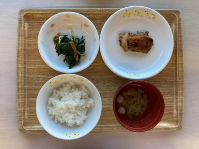 ◎鶏肉のごま味噌焼き ◎ほうれん草の磯和え ◎手まり麩のすまし汁