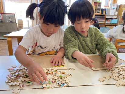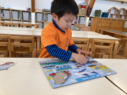 パズル遊びは、指先機能の向上や集中力などが育まれ、完成できた達成感により自己肯定感も高められる遊びです。