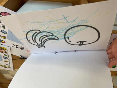 塗り絵や自由画など、一枚一枚にその時々の思いや工夫が込められており、ページをめくるごとに子どもたちの成長を感じることができます。
