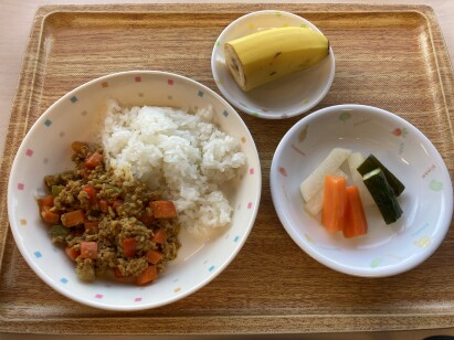 3歳以上児では、セルフバイキング形式で給食を食べていますよ。