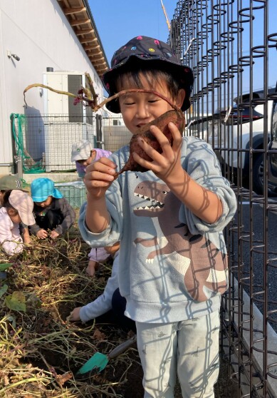 スコップでさつまいもを傷つけないように慎重に掘っていましたよ。大きいお芋や繋がったお芋を掘り起こして嬉しそうに見せてくれました!後日給食で提供されるのを楽しみにしていました♪