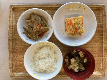 ◎千草焼き ◎きんぴらごぼう ◎豆腐と玉ねぎの味噌汁