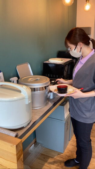 昼ご飯は、規定量の中で自分の好きな量をよそって味わうことができ、美味しいコーヒーでほっと一息つくこともできます。