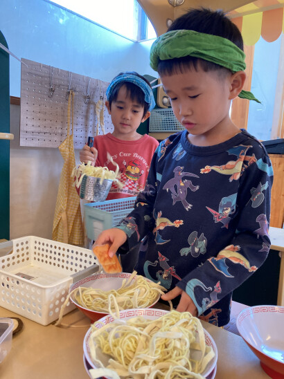 トッピングを盛りつけたり、湯切りをしたりと本格的でした☆