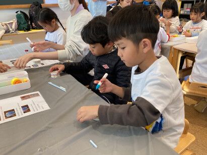 朝から夕方まで普段の活動とは違い、工作をしたり小学校に探検しに行ったり、園庭でお弁当を食べたりします。