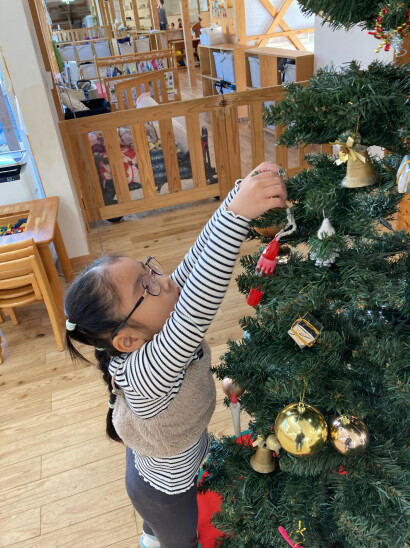 今日は子どもたちとクリスマスツリーの飾り付けを行いましたよ♪