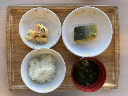 ◎鰆のカレームニエル ◎ポテトサラダ ◎しめじの味噌汁