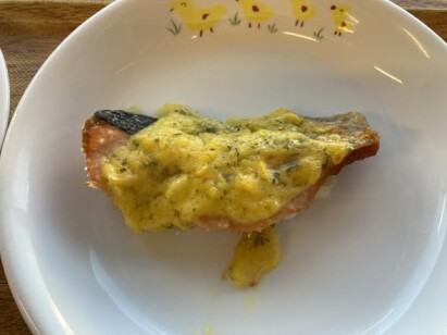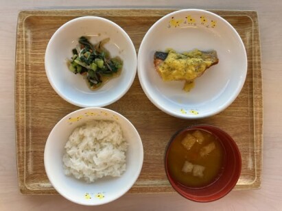 ◎鮭のマヨネーズ焼き ◎小松菜の磯和え ◎かぼちゃの味噌汁