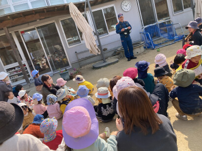幼年消防クラブの活動を通して、火の怖さや命を守ることの大切さを学び、そのことを年下の友だちにも伝えています。