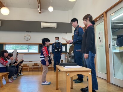 また、年長児は幼年消防クラブの解散式を行いました。