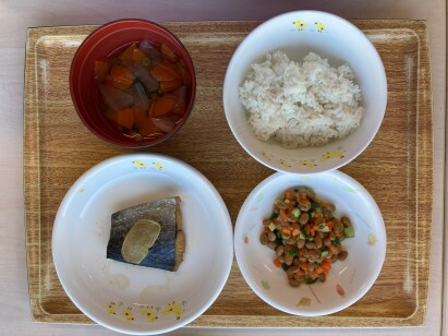 ◎鰆のソース煮 ◎胡瓜の納豆和え ◎大根のすまし汁
