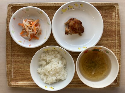 ◎鶏肉のごま味噌焼き ◎もやしと人参の甘酢和え ◎玉ねぎのスープ