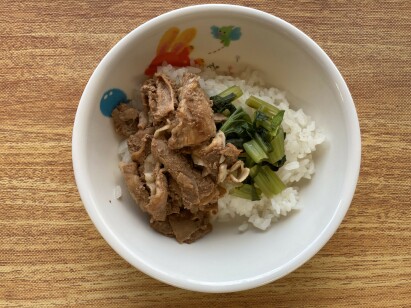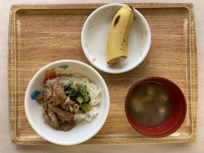 ◎豚ソース丼 ◎豆腐の味噌汁 ◎バナナ