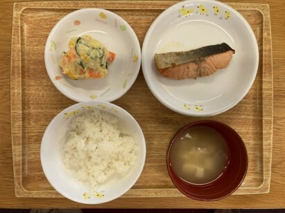 ◎鮭のみそ漬け焼き ◎ポテトサラダ ◎豆腐と玉葱の味噌汁