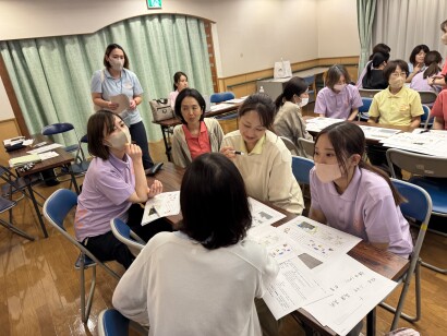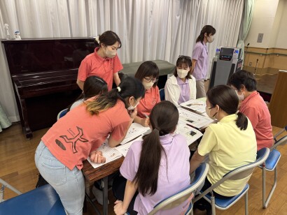 月に一度職員会議を行っています。今回は3園合同で集まり、保育目標の再確認を行いました。またグループ討議を行い、子どもの10の姿、なってほしい姿を職員同士出し合い、保育に対する意識を高める事ができました。
