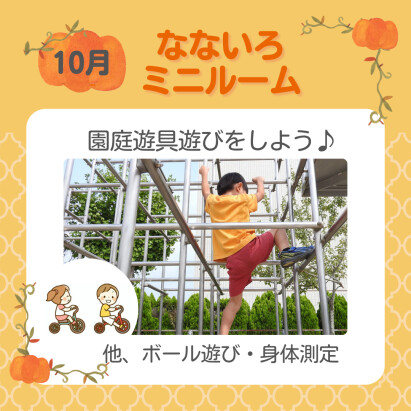 10月のなないろミニルームでは、『園庭遊具遊び』を予定しております。