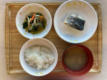 ◎鰆の米粉ムニエル ◎もやしのおかか和え ◎さつま芋の味噌汁