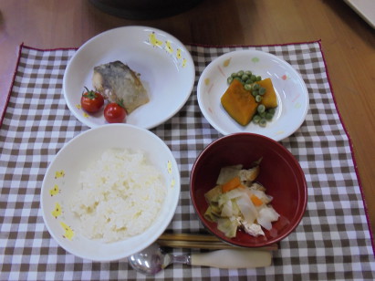 きょうの献立は ◎魚の竜田揚げ ◎南瓜の甘煮