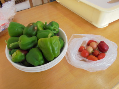 らいおん組(年長児)が自分たちで愛情込めて育てた無農薬ピーマン・トマトを収穫し、