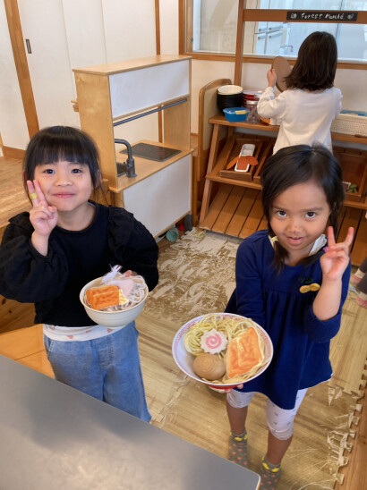 様子を覗いてみると…「うどんとラーメン屋さん」を開いていましたよ。