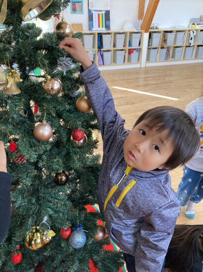 完成したツリーを見ながら、「サンタさん何頼む?」「なないろこども園にも遊びに来るかな?」と話す姿も見られ、サンタさんが来てくれるのを心待ちにしている様子でした♪