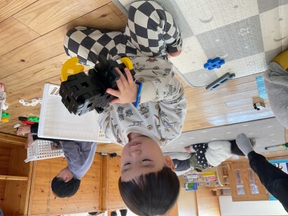 最近はニューブロックを使って遊ぶ姿が多く見られます。車やアイスを作り走らせたり食べさせたりと遊びを通して、想像力や表現力を育てています。最近はニューブロックを使って遊ぶ姿が多く見られます。
