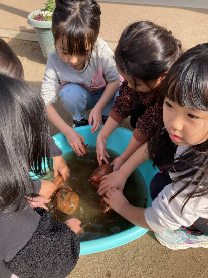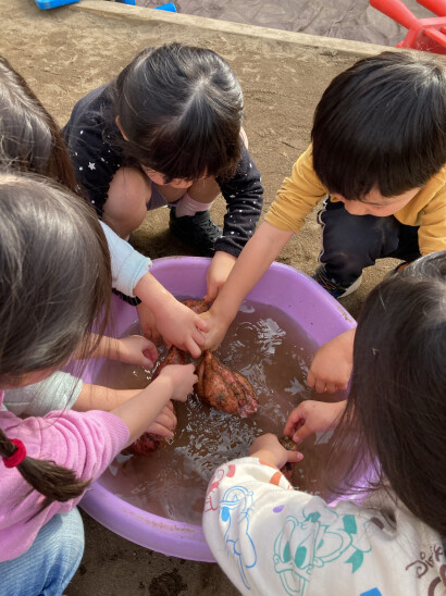 なないろ畑で育てたさつまいもが立派に成長したので、さつまいもをきれいに洗いました。