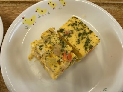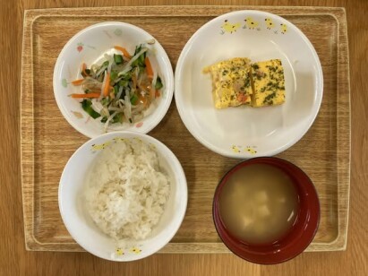 ◎スパニッシュオムレツ ◎もやしと青菜のナムル ◎豆腐と玉ねぎの味噌汁