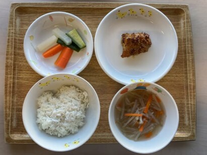◎鶏肉のごま味噌焼き ◎ピクルス ◎もやしの中華スープ