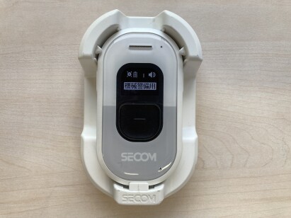 当園では、不審者などの危険や不安を感じた際に、通報ボタンを押すだけで連絡できる「ココセコム」を導入しています。簡単な操作で速やかにセコムへ通報することができます。