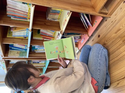 メルヘン館には、物語の絵本だけでなく、図鑑や行事にまつわる絵本も揃えてあります。子どもたちは、図鑑を広げて植物や虫の種類や名前を調べたり、職員は、季節に合わせて行事の絵本を活用したりして、日々の保育に役立てています。