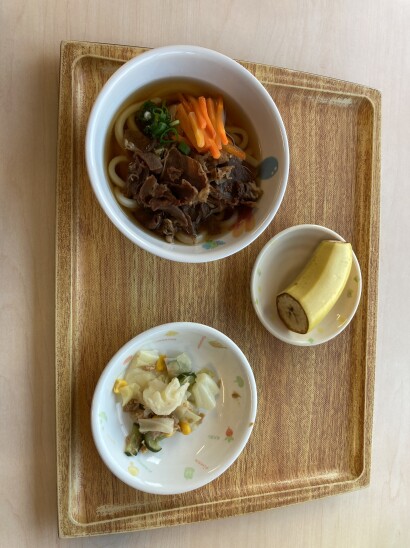 ◎肉うどん ◎ツナサラダ ◎バナナ