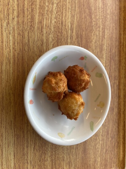 今週の給食は、セレクトメニューです。卒園児からリクエストあったメニューから栄養バランスを考えて、提供しています。人気のメニューで嬉しそうに食べる姿が見られましたよ!