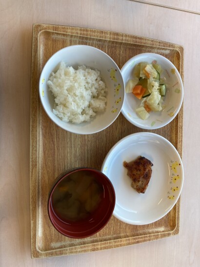 ◎鶏肉の味噌漬け焼き ◎キャベツの中華和え ◎わかめの味噌汁