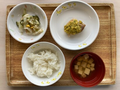 ◎鶏肉のコーン焼き ◎ツナサラダ ◎豆腐のすまし汁