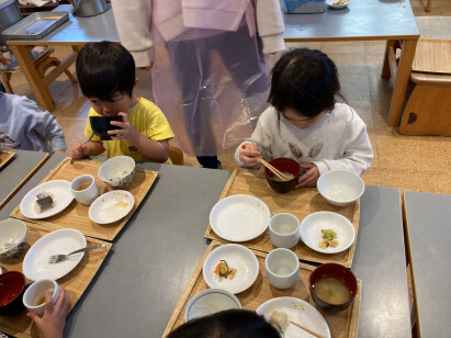 また、食べ終わると給食の先生に「おいしかったよ」と伝える姿もあり、食を通して感謝の気持ちも育むことができます。