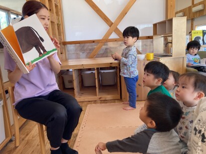 絵本を通して野菜や食材の名前を知ったり、食べ物ができるまでの過程に関心を深めています。