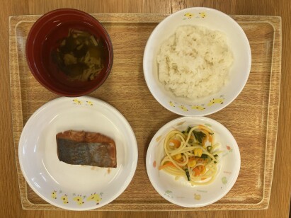 ◎鰆のさくら焼き ◎フレンチスパサラ ◎えのきとわかめのすまし汁