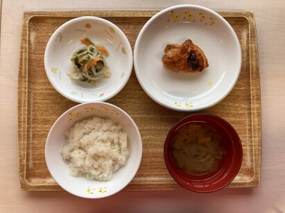 ◎鶏肉のコーン焼き ◎青菜ときのこの和風和え ◎茄子の味噌汁