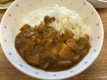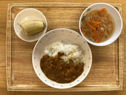 ◎チキンときのこのカレー ◎キャベツのコンソメスープ ◎バナナ