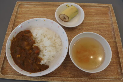 給食の職員が「卒園おめでとう」とメッセージ付きの手作りのランチョンマットを作ってお祝いの気持ちを伝えてくれた昼食はより一層美味しかったようです。