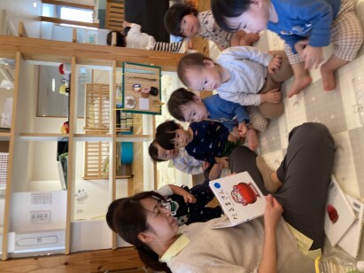 0歳児クラスでは、毎日絵本の読み聞かせをしています。
