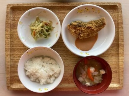 ◎鰆の米粉ムニエル ◎もやしのおかか和え ◎さつま芋の味噌汁