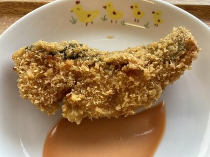 ◎鮭のフライ ◎もやしのカレー炒め ◎豆腐と白菜の味噌汁