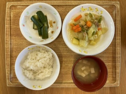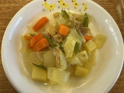 ◎千草焼き ◎きゃべつの胡麻和え ◎じゃがいもの中華スープ